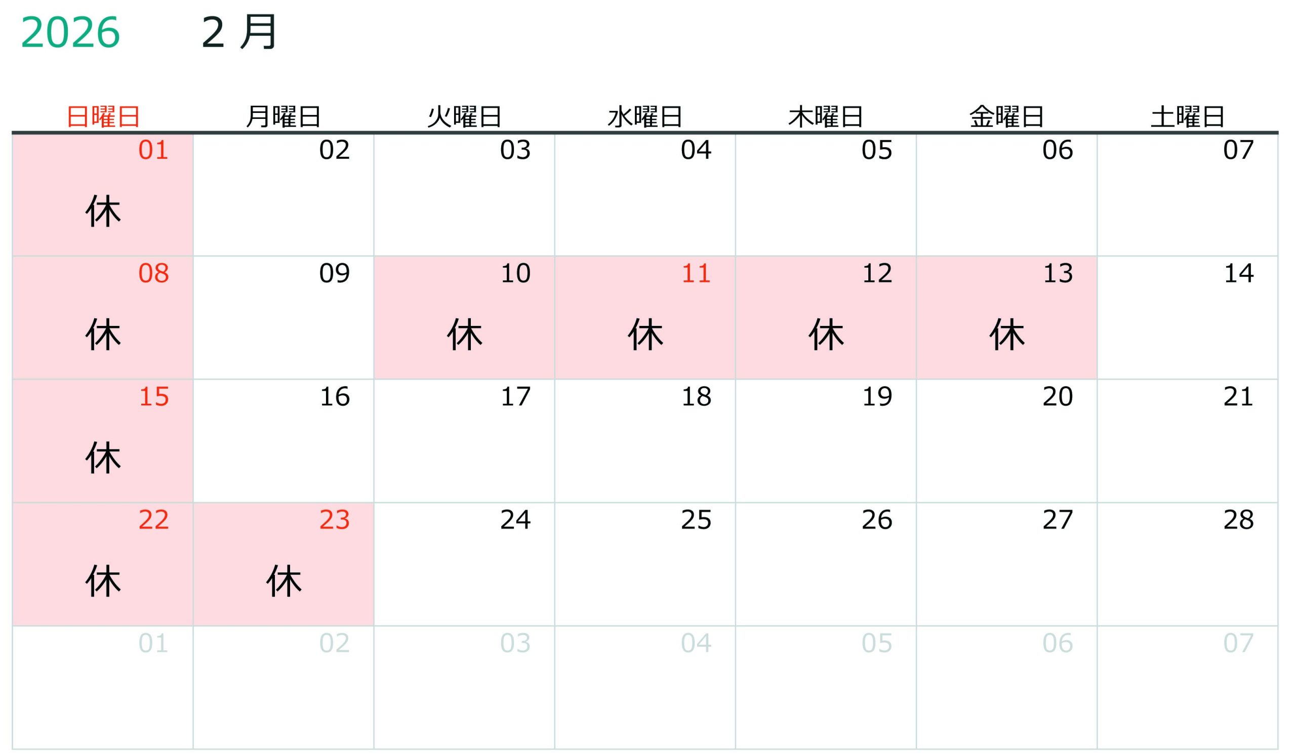 > 香里店2月営業のお知らせ